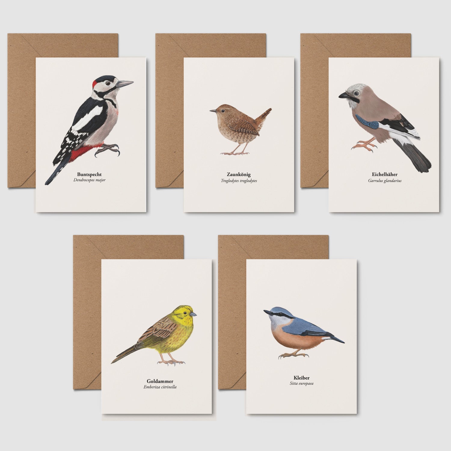 Alle Motive habe ich Strich für Strich von Hand illustriert – mit Fokus auf naturgetreue Details wie Gefiederstruktur, Körperhaltung und artspezifische Merkmale. Jede Karte trägt den deutschen und lateinischen Artnamen. Damit eignet sich das Set nicht nur als Geschenk oder Dekoration, sondern auch als kleines Lernmittel für Naturbegeisterte jeden Alters.